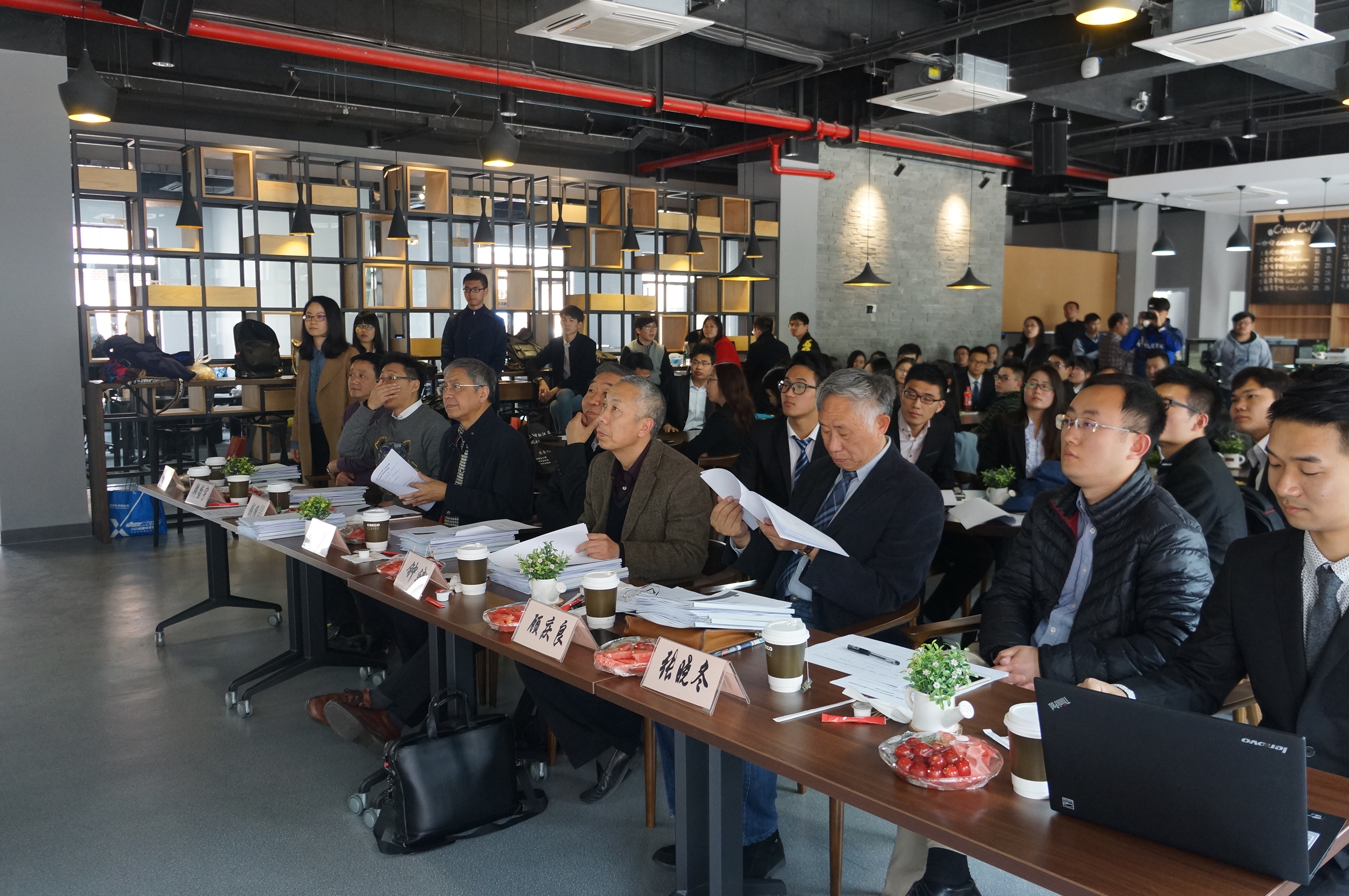此次答辩会上,评委团阵容强大,上海张江高科技园区开发股份有限公司顾学励,上海市创业投资行业协会钱维錩,科升投资钟斌,管理学院顾庆良教授,上海东华镜月资产经营有限公司总经理、党总支书记李俊,民用航空复合材料久久久久国产成人精品亚洲综合协同创新中心副主任韩哲宇以及久久久久国产成人精品亚洲综合团委书记张晓冬担任评委。