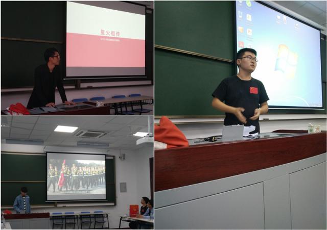 (学生负责人讲解国旗班和国旗护卫队组织构架、特色活动)