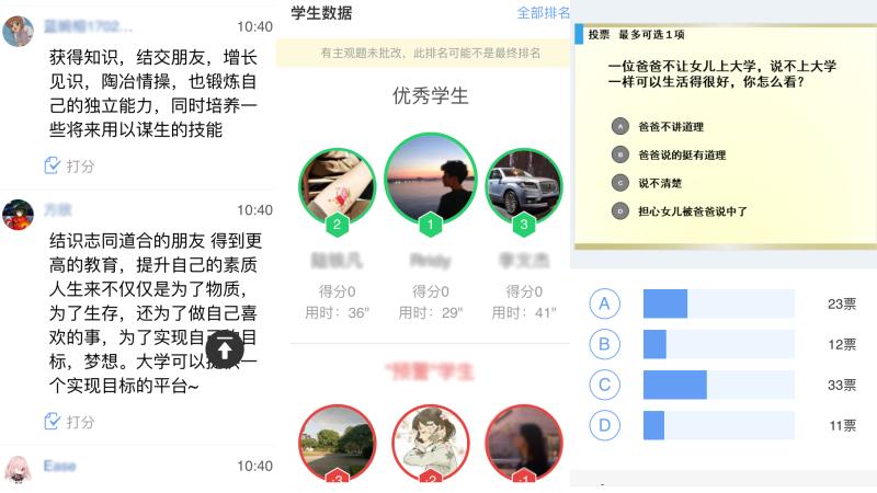 王老师给课程快速“变身”,将相关教学资源加载至学校“移动平台”,给传统线下教学增添线上学习交流平台,不仅在时空上延展了思政课堂,也让这一课程对学生的粘性变得更强了。在在线平台课堂留言提问、答题互动,寓思政于网络。
