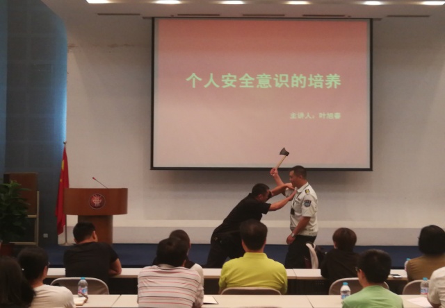 5月16日,保卫处邀请到原武警特战队员、射击教官叶旭春给保卫处工作人员、机关党委青年干部、全校二级单位安全员等做了 “个人安全意识的培养”讲座。叶教官曾经是武警特战大队作战队员,参与过多位国家元首和领导人的安保工作,曾任特警学校射击教官,退休后从事个人安防培训工作,具有丰富的个人安防经验。他分析大量的案例,并通过各种道具、现场示范动作,给大家上了一堂生动的、实用的加强个人安全意识和提高个人防护技能的安全课。两个小时的讲座,所有人听得专心致志,最后还意犹未尽,直呼过瘾。