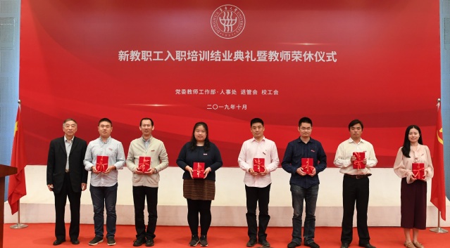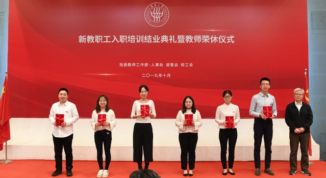10月22日,我校举行“坚守教育初心 传承奋进使命”2019年新教职工入职培训结业典礼暨教师荣休仪式。党委书记刘承功出席活动并讲话,党委副书记刘淑慧、副校长卿凤翎、退管会第一副主任王以刚、校关工委副主任浦解明出席活动并分别为荣休教师颁发纪念品,为新教职工代表颁发结业证书。老同志代表、相关职能部门负责人、二级单位党组织负责人等参加活动。活动由人事处处长、人才办主任、党委教师工作部部长李炜主持。