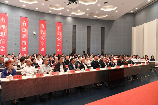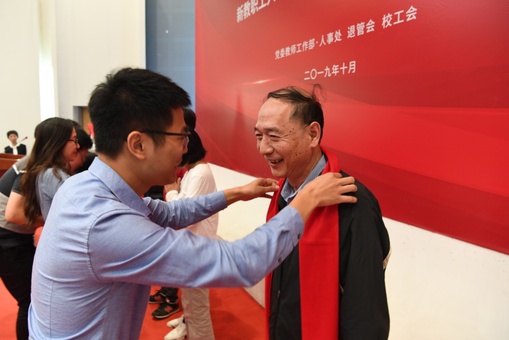 刘承功在讲话中指出,举办新教职工入职培训结业典礼与老教师荣休仪式,是厚植弘扬尊师重教风尚的重要举措。学校将深入贯彻落实全国教育大会精神,坚持把教师队伍建设作为基础性工作,结合当前正在开展的“不忘初心、牢记使命”主题教育,以更加有力的举措扎实推进人才强校核心战略。刘承功希望广大教师要自觉按照政治强、情怀深、思维新、视野广、自律严、人格正的要求,不断提高思想政治素质和师德师风水平,更好担起学生健康成长指导者和引路人的责任;尤其新入职的青年教职工要抓住事业发展的“黄金时期”,虚心学习、合理规划,尽快融入团队、融入学科、融入学校;要牢固树立对标一流、追求卓越的价值取向,立足本职、实干建功,凝心聚力、传承接力,以进取之心、奋进之态努力建设“奋进东华”;期望退休老教师继续关心支持学校发展,尤其在学科建设、教学科研、指导青年教师等方面继续发挥优势、贡献力量。