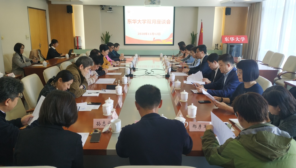 11月12日,学校在松江校区召开双月座谈会沟通学校重点工作,并听取对科学谋划好“十四五”规划的意见建议。党委书记刘承功,校长俞建勇,党委副书记崔运花,副校长、欧美同学会会长陈革,党委常委、组织部部长朱英出席。各民主党派和统战团体负责人、各级党外人大代表及政协委员,相关职能部处负责人参会。