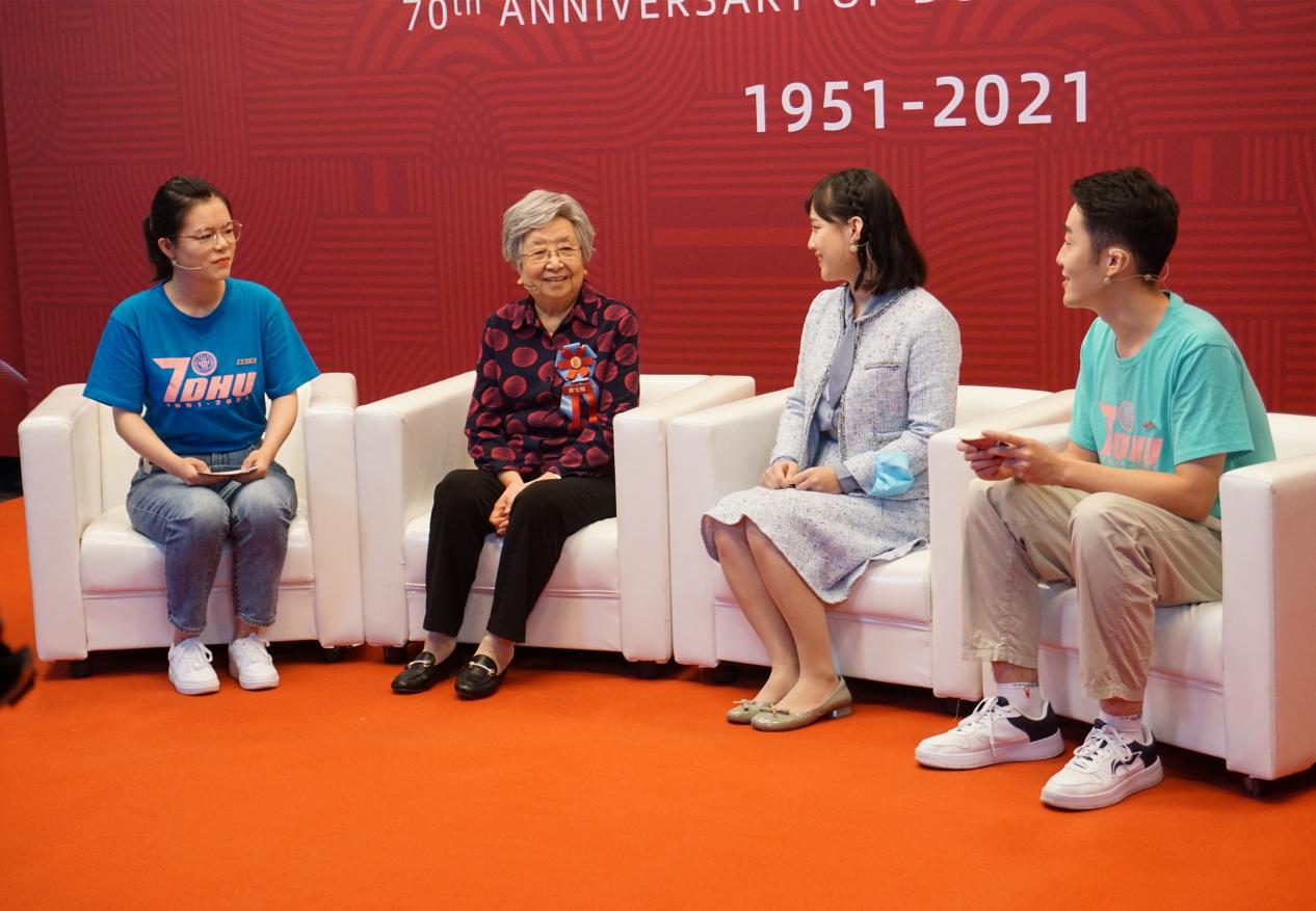 再次回到母校,黄宝妹还多了一个新“身份”——作为校友代表发言。上世纪60年代,已快30岁的黄宝妹,作为新中国纺织工人的优秀代表被保送到久久久久国产成人精品亚洲综合(时名华东纺织工学院)读书深造。三年寒窗,她凭着劳模的那股韧劲儿完成大学全部课程的学习,并以优异的成绩取得毕业证书。她特别回忆起在东华的难忘时光,“在这里,我们获得了立身的真知,掌握了搏击的本领,锻造了不屈的人格,汲取了前进的力量。”